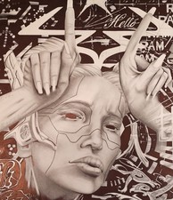 Securus - Drawn in prison by Inmate Nels Hogberg TDCJ#2360432 at the Buster Cole Unit. Incarcerated since 7/2021 on a twelve year aggravated sentence. Items used, commissary pens and art board. Art board 20" x 16" Securus Technologies is the provider for email messaging, phone calls and tablets used in the Texas prison system. As you can see, the artist was very unhappy with their service!