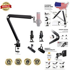 Pro Mic Boom Arm for HyperX QuadCast. Perfect Compatibility: Built with a standard 3/8" to 5/8" adapter, this mic boom arm is compatible with renowned microphones such as the HyperX QuadCast, SoloCast, Blue Yeti, Shure MV7, MV7X, SM7B, Rode, and more.