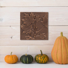 CHOOSE YOUR FAVORITE - Tiles are available in Aspen, Gingko, Maple, Oak, or Pine designs. Collect all five to complete the set. DURABLE CAST ALUMINUM - Cast aluminum with a weather-resistant antique copper finish, tiles can be used indoors or outdoors.