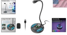 Ideal for Streaming & Podcasts. Professional USB Microphone with Mute Function. Compatible with Zoom, Teams, Skype, YouTube, and Twitch—ideal for streaming or podcasting. One-Touch LED Mute & Ambient Lighting.