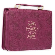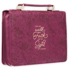 Protective Maroon Floral Faux Leather Bible Cover Carry Case with Handle Large