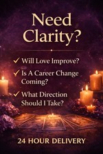 • Career and money. • Love Energy Guidance. • Wealth & Opportunity Guidance. Each reading is done with focused energy and intuitive insight. • Clear explanation of the energy surrounding your situation.