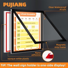 Manufacturer PUJIANG. Not suitable for damp surfaces, powdery walls, and painted surfaces,SIZE-Outer border size is 9.8"x12.4",Display border size is 8.5"x11",suit standard 8.5"x11" paper. material Acrylic.