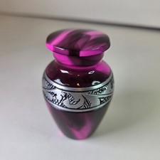 Elevate your memorial with the Purple Mist Small Cremation Keepsake, a tasteful urn designed to hold a portion of your loved one's ashes. Crafted from durable aluminum, this urn measures 2.75 inches in height and can accommodate 3-4 cubic inches or 2-3 tablespoons of ashes, making it a fitting tribute for those who wish to preserve a small piece of their loved one. With its purple & pink hues, this urn ensures that the final resting place of your loved one remains a peaceful reminder of the memories you shared. The turn-lock closure provides a secure seal, while its compact size makes it an appropriate choice for both decoration and funerary services. It's an elegant solution for those seeking a memorable and dignified way to cherish their loved one's legacy.
