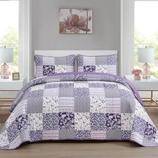 Quilt Set Size, 2 Pieces Plaid Floral Bedspread Set Patchwork Twin Purple