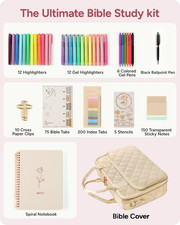 Quilted Bible Journaling Kit with Highlighters, Tabs & Shoulder Strap - Beige