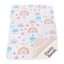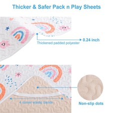 Quilted Pack n Play Sheet Fitted, Breathable Thick Pad for 38x26", Rainbow