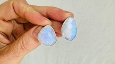 Rainbow Moonstone Post Earrings. Handmade Sterling Silver Jewelry. 0705