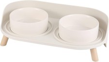 Excellent Quality - The cat food bowl and cat water bowl are made of ceramic fired at high temperatures, free of lead and cadmium, non-toxic and odorless, 100% safe for your pets. And the cat bowl stand is made of durable and BPA-free plastic, strong and stable.