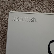 Up for sale is an original plastic accessory case from the 1984 Macintosh launch. This case features the iconic minimalist "Picasso" line art logo and the debossed "Macintosh" serif font on the top left.