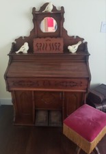 Beautiful Nineteenth Century George C. Bedwell Pump Organ and stool. All original, in excellent condition. Pedals and organ all work. Handles on both sides in tact. Ornate top piece is removable.