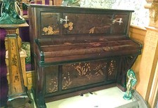 Rare Art Nouveau Marquetry Inlaid Piano Paris 1900 Japonisme Style by A. Bord