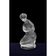 “Diana the Huntress” mythological subject. Signed Lalique on base. The satin-finished crystal contrasts elegantly with the polished clear base, creating depth and luminosity from every angle. This piece is highly sought after by collectors due to its subject matter, artistic quality, and limited production history.