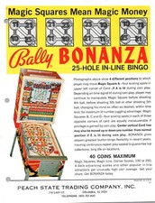 This rare Bally Bonanza Bingo Pinball Machine Game Flyer Ad is a must-have for any collector of vintage arcade, jukebox, and pinball memorabilia. The 8x11 original flyer from the 1970s is a true gem that captures the essence of the era. The machine was manufactured in the United States, adding to its appeal and authenticity. The brand Bally is synonymous with quality and innovation in the world of pinball, making this a valuable addition to any collection.