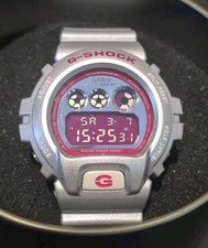**BRAND NEW BATTERY ** The Rare Casio G-Shock DW-6900CB watch features a sleek silver and pink color design with a logo dial pattern. This quartz movement wristwatch is part of the Sports style collection and is shock-resistant with alarm features. The watch has a 45mm resin case and a two-piece strap band closure. With a classic round watch shape and a polished case finish, this G-Shock 6900 model is a stylish and practical choice for men looking for a durable and reliable timepiece.