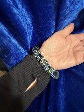 These are not mass-produced beads; they are wearable pieces of art handcrafted by the Krobo people of Ghana. While the glass is still hot and glowing, a master artisan uses a thin wooden stalk to hand-paint the intricate white stripes and sun-yellow dots seen on this strand.