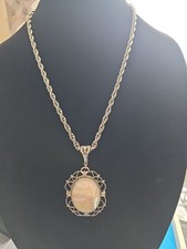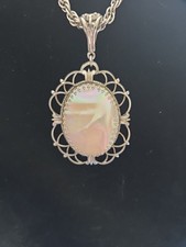 Vintage Rare Whiting & Davis signed Large Abolone Necklace in large Silver Chain 22 inches long. In excellent condition. Pendant is 2¼ inches tall and 1¾ inches wide. Absolutely stunning piece.
