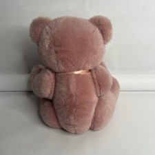 This product is a rare vintage 1989 Dakin Dusty Pink Jointed Teddy Bear plush, made in South Korea. It is a 14-inch collectible stuffed animal from the 1980s, featuring a charming bow design. This teddy bear is a nostalgic piece that captures the essence of retro and mid-century collectibles, perfect for collectors of vintage memorabilia. Its jointed construction adds to its playability and appeal for fans of classic teddy bears.