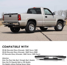 ✅ 【SUITABLE MODELS】Rear Bumper for 1999-2006 Chevrolet Silverado 1500, 2007 Chevrolet Silverado 1500 Classic, 1999-2004 Chevrolet Silverado 2500, 1999-2006 GMC Sierra 1500, 2007 GMC Sierra 1500 Classic, 1999-2004 GMC Sierra 2500.