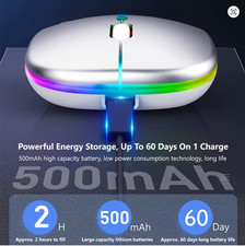 Rechargeable Bluetooth Wireless Mouse with 2.4GHz USB RGB 1600DPI Mouse for Comp