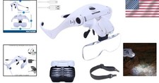Rechargeable LED Head Magnifier with Interchangeable Lenses & Adjustable Brig...