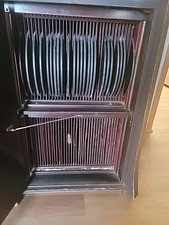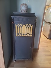 The vintage console record player is a wind-up type model associated with Thomas Edison. It comes in good condition and includes 24 albums. This antique instrument falls under the categories of "Other Antique Instruments" and "Musical. It needs a stylist in order to play the albums (Pre-1930)."