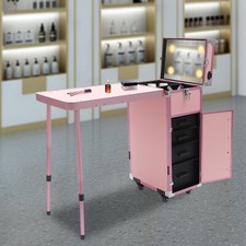 Specifications Color: Pink Style: Modern Shape: Rectangle Mount Type: Freestanding Material: ABS, Aluminum Alloy Number of Lights: 4 Plug Type: US Standard Light Color: Warm Yellow, Neutral, White Makeup Mirror Control Method: Touch Number of Universal Wheels: 4 (2 With Brakes) Load-bearing Capacity: 50kg/110.23lbs Product Size: 38*27.3*69.5cm/14.96*10.75*27.36in Package Size: 89*49.5*47cm/35.04*19.49*18.5in Gross Weight: 17kg/37.48lbs Net Weight: 14.8kg/32.63lbs Package Included 1* Makeup Train Case 1* Power Cord 4* Keys 1* English Manual.