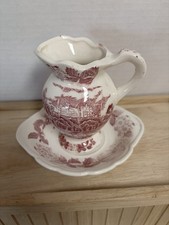 Red Transferware Miniature English Ceramic Pitcher And Bowl Vintage Set EUC