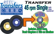 Single 45rpm record digitally transferred to CD (both sides) or mp3 is only. Vinyl single record (45rpm)to CD. Here at Reel Transfers, our goal is to make the job easy for you-. more than one reel, simply enter that quantity at the specified box below.