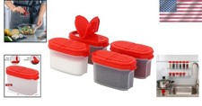 Refillable 4 oz Spice Containers - Clear Plastic with Airtight Lids, 4-Pack Red