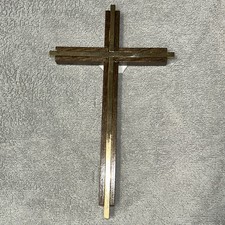 Religious Walnut Cross With Gold Inlay 8”X 5” Wall Decor