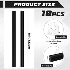 ReliThick 10 Pcs 48" Black Plastic Poster Hanger Rails Clips w/ 40 Rings
