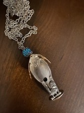 Remembrance Silverplate 1948 Birdhouse Pendant Necklace Handcrafted. Adorable birdhouse crafted from a nostalgic 1948 remembrance international silver knife. Chain 15 inches. I purchased this because this was the pattern my mother had when I was a child but I’ve never worn it. I'm not sure of the metal type of the chain .