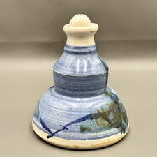 Reno Signed Studio Pottery Oil Lamp Blue Glaze Stoneware Abstract Contemporary
