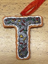 Resin Gingerbread Cookie Monogram Initial T Christmas Ornament 3.5"