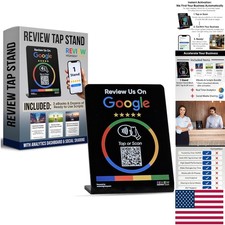 Reusable NFC Tap & QR Code Review Stand. Works with All Phones: Compatible with all smartphones, whether old or new—seamlessly integrates with instant NFC tap and QR code scanning. Ready to leave an impactful mark in your industry?.