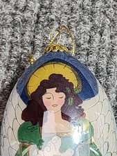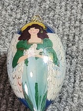 Reverse Hand Painted ANGEL BLOWING Glass Tear Drop Christmas Ornament 5”