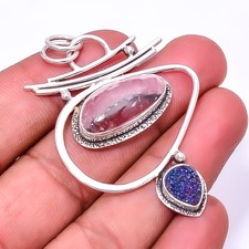 Rhodochrosite,Blue Titanium Agate Drusy 925 Sterling Silver Pendant 2.15" P36