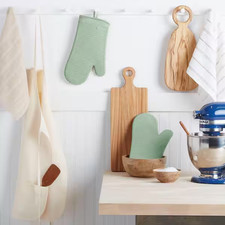Ribbed Soft Silicone Pistachio Green Oven Mitt Set (2-Pack)