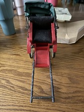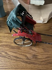 The Rick Shaw Carriage features a green canopy, adding a touch of elegance and style to your baby's travels. Whether for display or practical use, this carriage is sure to stand out with its distinctive green color and classic design.