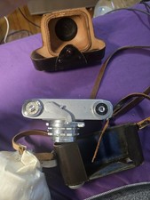 The Ricoh 35 S Black Silver Rangefinder Camera is a vintage piece that exudes classic style with its black and silver color scheme. This camera, part of the renowned Ricoh brand, is designed with precision and functionality in mind, making it a reliable tool for photography enthusiasts. It comes with a leather case, adding a touch of luxury to this timeless piece. In pretty good condition. the lever to pull the film and the release buttons work. dont know if you can actually take.pictures. As Is.