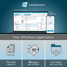 The ScanSnap iX2500 Premium stands out with its elegant faceted design, available in both black and white to complement any workspace. Built with quality materials and robust construction, it features a large seamless touchscreen that responds like a smartphone. The high-capacity document feeder can hold up to 100 sheets and it scans double-sided documents at an impressive 45 pages per minute. With USB-C and Wi-Fi connectivity, it offers the flexibility to put the scanner where it's most convenient.