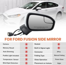 Right Passenger Side Mirror Assembly Compatible with Ford Fusion 2016-2020 Mirrors with Power Manual Folding White 3Pins. Mirror Replace: Mirror Replaces# FS7Z-17682-B FS7Z-17682-B. Easy Install: No Special Tools Needed.