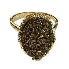 Ring - Oval Druzy Crystal, 18K Vermeil Bronze
