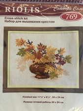 Riolis 769 Counted Cross Stitch Kit Finished size: 11 3/4” * 9 1/2”; 30 * 24 cm. The kit contains: Color chart, 10 count color cotton fabric for cross stitch, woolen and acrylic yarn ( 10 colors), a needle.