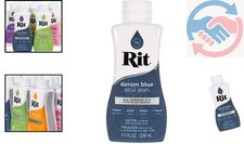 Rit Liquid Dye - 8 Oz Denim Blue. Unleash your creativity with our Rit Liquid Dye, available in an exquisite Denim Blue hue, perfect for transforming a myriad of materials. Do you desire to breathe new life into your wardrobe or craft projects?.