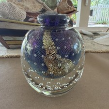Robert Eickholt Art Glass Signed 1986 Blown Glass Controlled Bubbles 4.5” H
