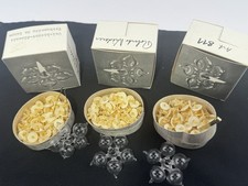 Includes 3 glass flowers and each has a box of wicks. Very Unique. The boxes of candles are marked with "G.A. Glafey Nürnberg" and "Qualität extra fein N° 14," The floating flowers work by using a glass float to hold a wick, which burns a liquid fuel.