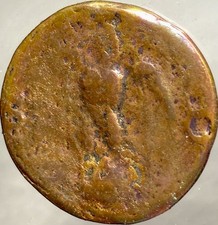 This ancient Roman coin is a great find from the Imperial era, specifically during the reign of Emperor Vespasian from 69-79AD. The denomination is a As and it bears the well worn face of Emperor Vespasian.