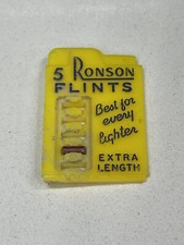 VTG Ronson five flints pkg with one flint remaining. Packaging is yellow plastic, with one flint remaining. Good condition.